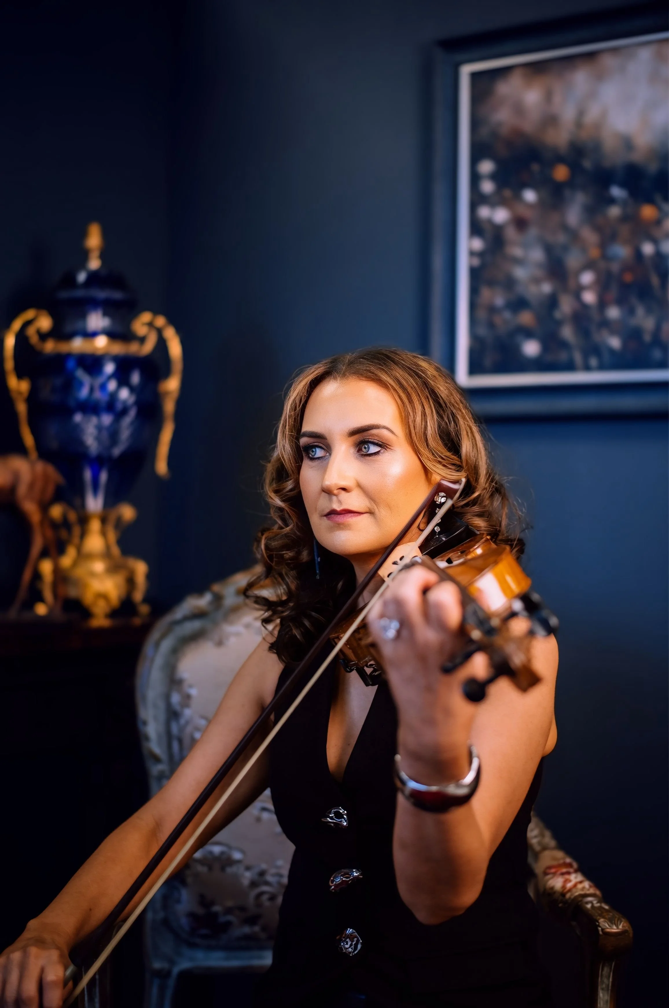 Like her sisters, she is a talented musician skilled in piano and tin whistle, but it was the violin that truly captured her heart and talent. During her teenage years, joined choirs and performed with school and regional orchestras before moving on to Celtic rock bands. Her unique fiddle sound, paired with Breige’s tin whistles, gives the Hanna Sisters’ music its distinctive Celtic flair. She also adds rhythm with the bodhrán and bongos during live shows.
